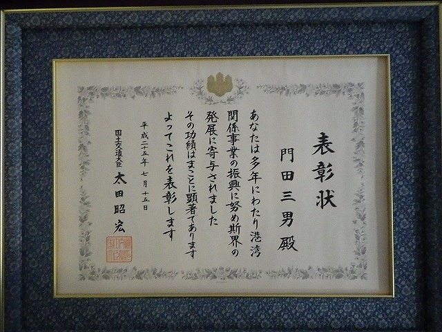 平成25年「海の日」功労者表彰において、国土交通大臣より、