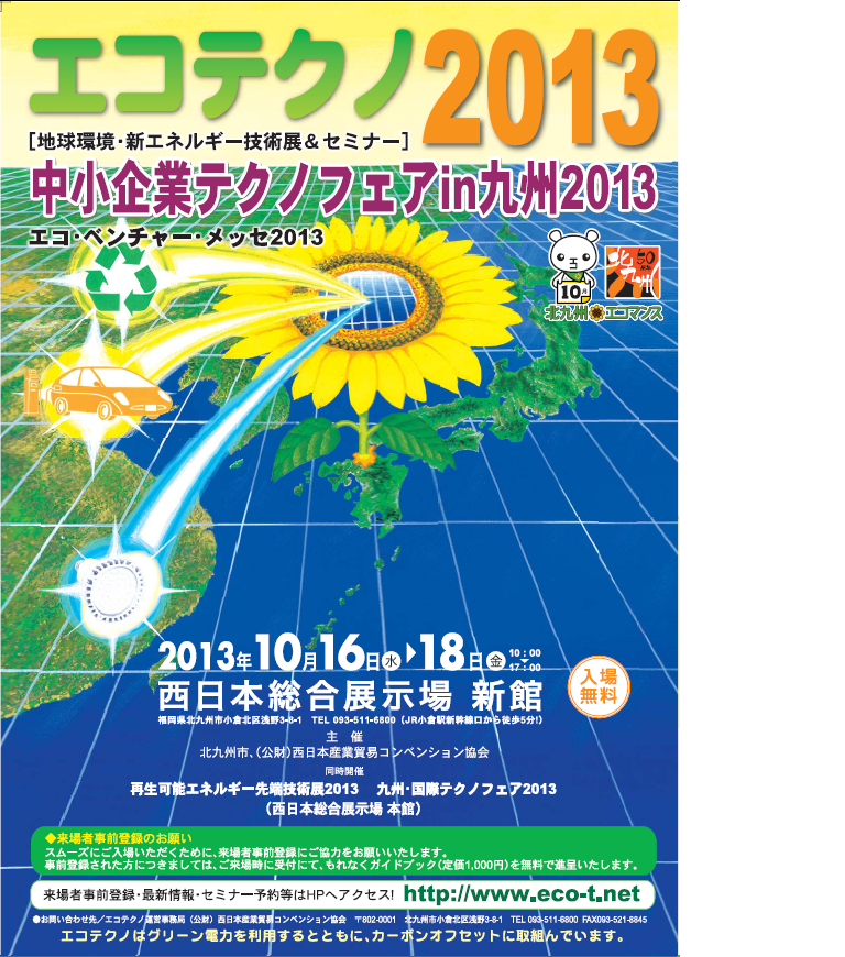 10月16日(水)~10月18日(金)北九州市で開催される『エコテクノ2013』に出展します!