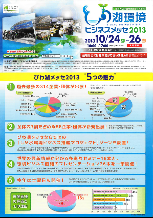 びわ湖環境ビジネスメッセ2013に出展します! 2013年10月12日 最終更新日時 : 2013年10月12日 kdt-admin 10月24日(木)~26日(土)に滋賀県で開催されます、 『びわ湖環境ビジネスメッセ2013』に出展します!