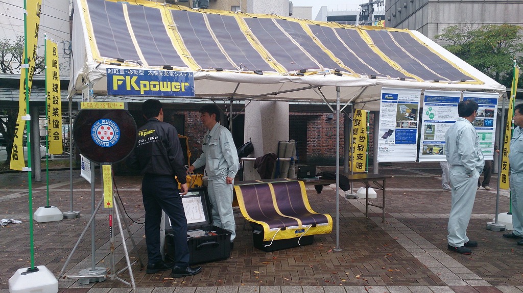 当社テントには、超軽量・移動型 太陽光発電システム”FKpower”を設置!