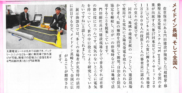 当社の太陽電池シート『超軽量移動型太陽光発電システムFKpower』