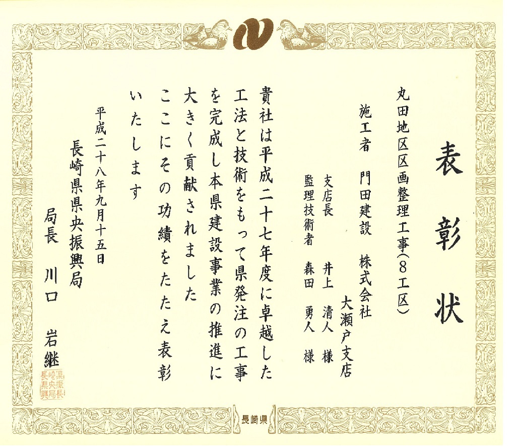 県央振興局 優秀工事表彰を頂きました!! 2016年10月12日 最終更新日時 : 2016年10月12日 kdt-admin 平成28年度施工『丸田地区区画整備工事(8工区)』 において、県央振興局長より表彰を受けました!
